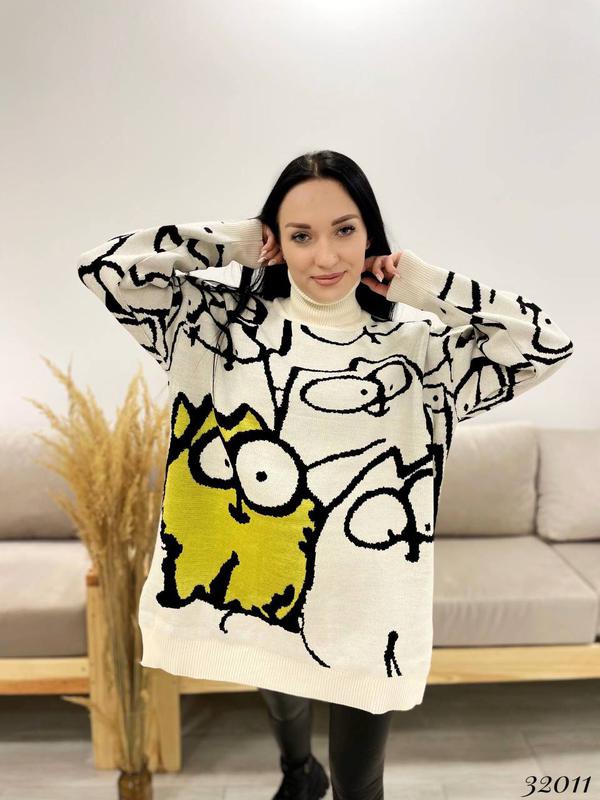 Светр із жовтим принтом , під горло Колір:бежевий Матеріал: вовна+акрил Сезонність:демісезонні Код товару: 32011 Розмір: S/L