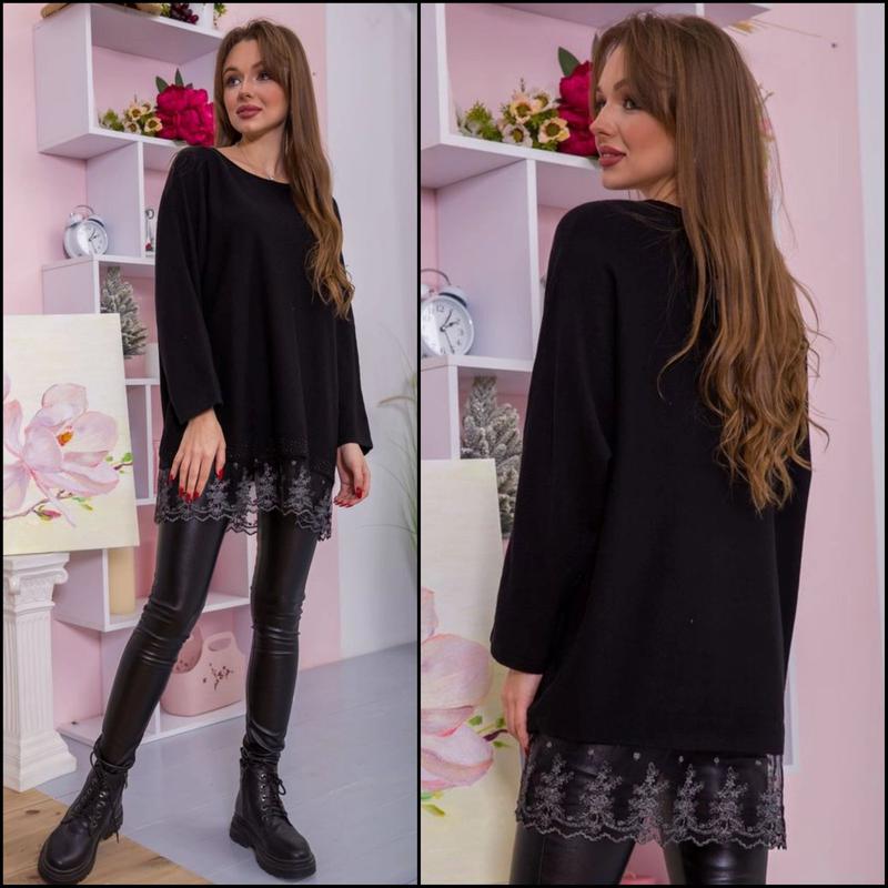 Стильный универсальный женский ангоровый свитер БАТАЛ. ❤️ Свитер свободного кроя, выполнен из мягкой ангоры, по низу декорировано изделие гипюром.🌸🌸🌸 Тёплый и очень приятный к телу!!!🤗 Качество супер!!!🔥👍 Этот свитер отлично впишется в гардероб современной модницы🤩😊 Размер 42-50 (универсальный) ПОГ - 60см Длина изделия - 72см Длина рукава по внутреннему шву - Материал: ангора, гипюр Цвет: чёрный Стиль: повседневный, нарядный Состав ткани: 45% Вискоза 37% Полиамид 18% Модал