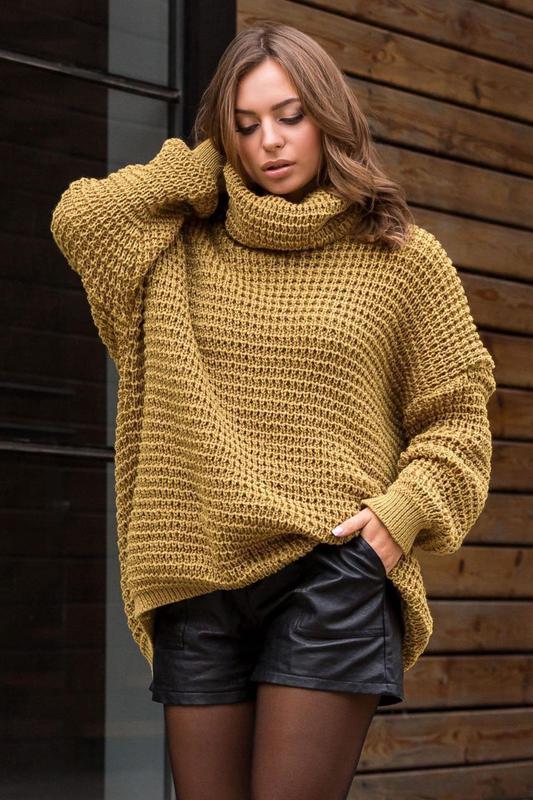 Свитер Фристайл Размеры : oversize 46-58 Состав:30% шерсть, 70% акрил Длина по спинке 75 см Цвета: Коричневый, бордо, горчица