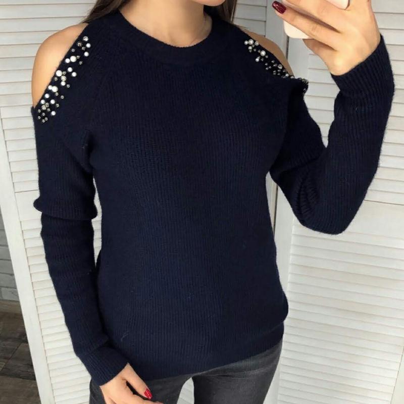 остался один свитер, мягенький, красивый дизайн, фурнитура хорошо закреплена Размер:44-48 Свитер Женский Цвет: тёмно-синий хорошо тянется Замеры: Длина 54 см По груди 46 см Низ 39 см Длина рукава 56 см