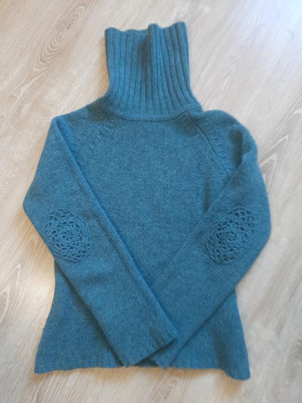 Шерстяной теплющий свитер красивого цвета, оригинальная отделка на локтях. Размер указан ХL, но после стирки подсел, поэтому идёт на S-M