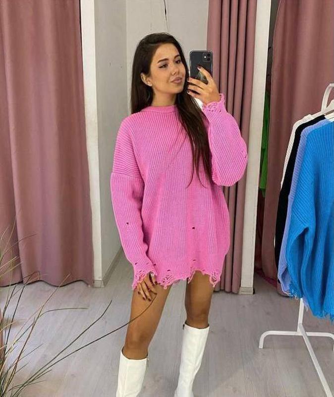 💝🔝🔝🔝Нереальная новинка🔝🔝🔝 Стильные туники свободного кроя с прорезями (Производство Турция) машинная вязка 30% шерсть/70% акрил размер oversize бюст 130 см рукав 58 см длина 73 см цвета : Цена 7⃣5⃣0⃣ грн