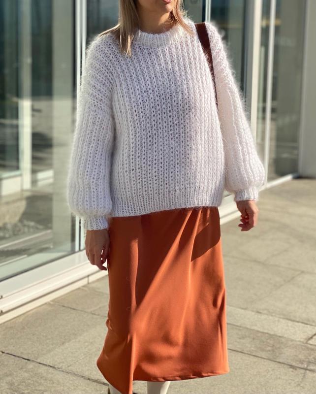 Стильный свитер из премиальной пряжи. Пушистый,лёгкий и воздушный. Ручная работа. Натуральный состав : мохер 83%, хлопок 17%.
