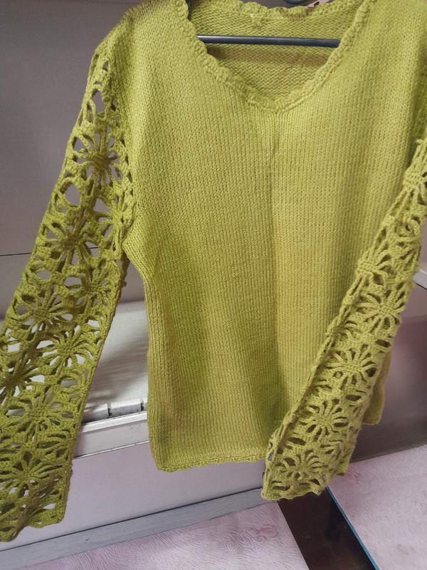 Кофточка вязаная русская робота ажурная Розмір 50-52 немного тянется ПОГ 50 Длинна 61 Рукав 70, нитка акрил