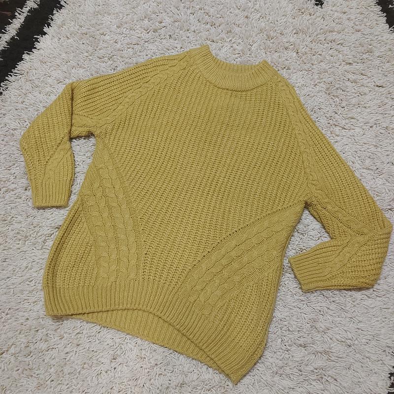 Тёплый свитер, шикарного горчичного цвета. В реале очень красивый, с ворсинками.