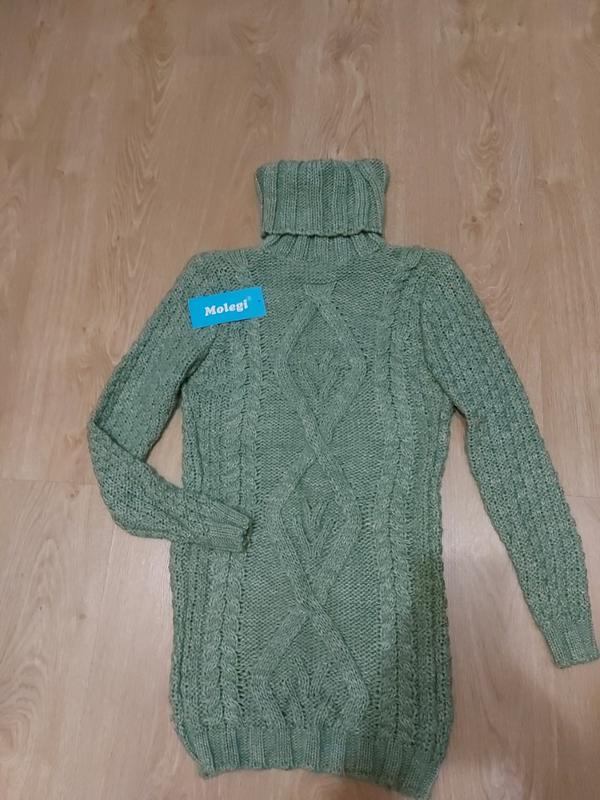 Разгружают шкаф, новый теплый свитер, спокойный цвет - зеленый меланж ПОГ 43, свободно тянется до 52 Длина от плеча 79 Длина рукава от плеча 64