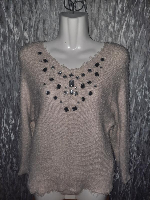 Пушистый тёплый свитер,светло бежевого цвета.,расшит камнями.