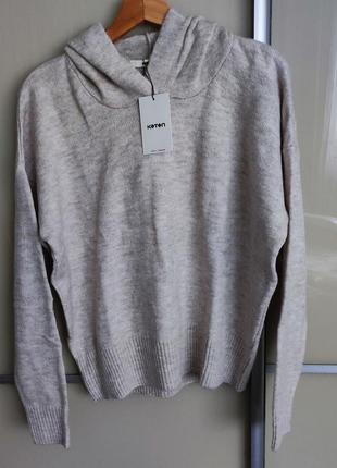 Кремовый свитер с капюшоном, лёгкий и приятный к телу, хорошо сидит, новый