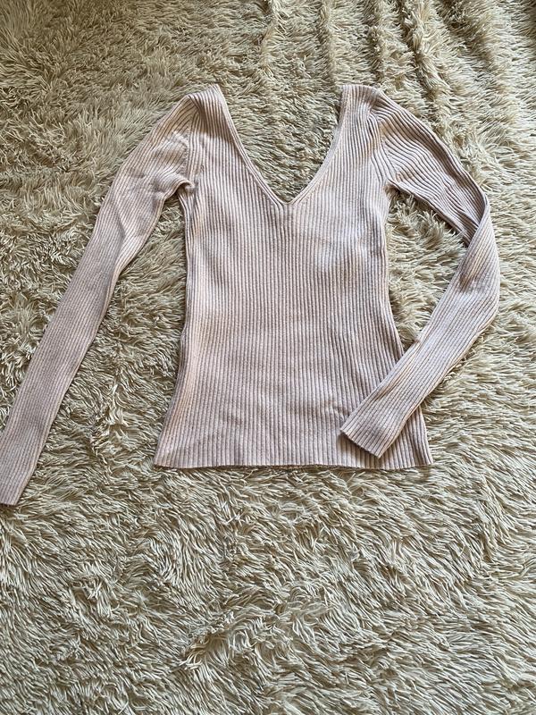 Бежевая кофточка в рубчик в новом состоянии. Очень нежная и приятная к телу. Хорошо тянется.