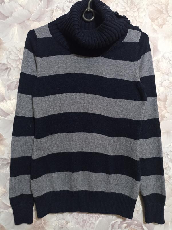 Стильный качественный свитер в идеальном состоянии. 💯% хлопок. На последнем фото указано что нет одной пуговицы, но это вообще не заметно. Бирка с составом срезана. Был одет буквально пару раз. ПОГ 41, длина 58, рукав 63. Пересылаю.