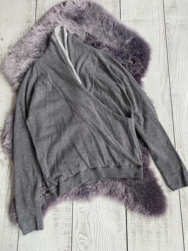 Оригинальный кашемировый пуловер на запах.Бирки с размером и составом срезаны.На ощупь кашемир.Возможно с примесью.