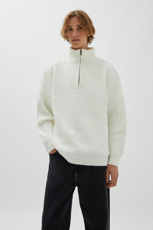 Свитер с длинными рукавами и высоким воротником. Застегивается на молнию на груди Дліна - 70. Пог - 60. Рукав от ворота - 78