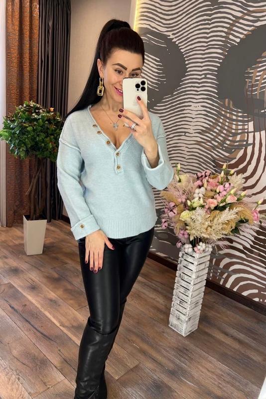 🧡НОВИНКА СЕЗОНА 🍃🍃🍃 стильный и комфортный свитер прямого кроя с красивым вырезом на груди и эффектными пуговичками спереди, изготовлен из качественного и приятного к телу трикотажа гладкой машинной вязки , украшенного оригинальными изнаночными швами и подворотами на рукавах свитер отлично смотрится на любой фигуре, легко подойдёт для любых жизненных ситуаций, подчеркнёт красоту вашей фигуры, индивидуальность и чувство вкуса РАЗМЕР УНИВЕРСАЛЬНЫЙ 42-46 ДЛИНА ИЗДЕЛИЯ 58-60 СМ КОД 0181🍃