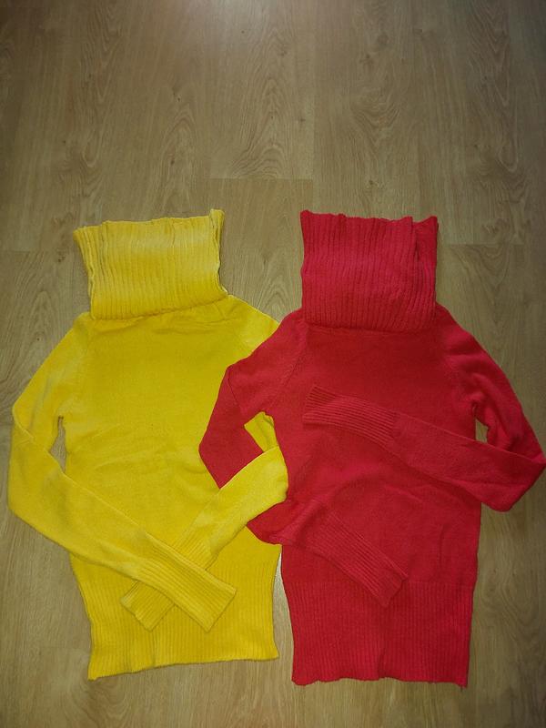 Разгружаю шкаф, оба свитера в идеальном состоянии, надевала пару раз. Малиновый и жёлтый цвет. ПОГ 38 свободно тянется до 50 Длина рукава от горловины 64 Длина от горловины 72 Цена указана за 1 шт