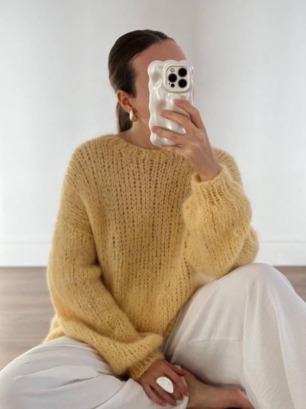 Базовий светр - теплий і затишний. Сплетений вручну. Класичний, позачасовий дизайн, нічого зайвого, ви з легкістю зможете вписати його в свій гардероб. Фасон oversize допоможе залишатися завжди в розслабленому стані, відчувати комфорт і невимушеність.