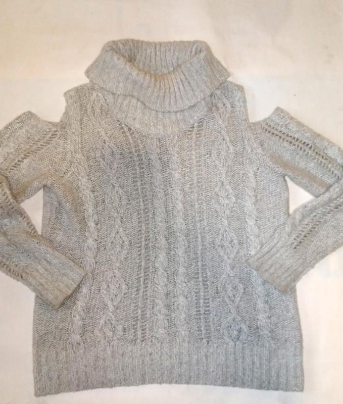 очень крутой шерстяной свитерок, с открытыми плечами,попу прикрывает.