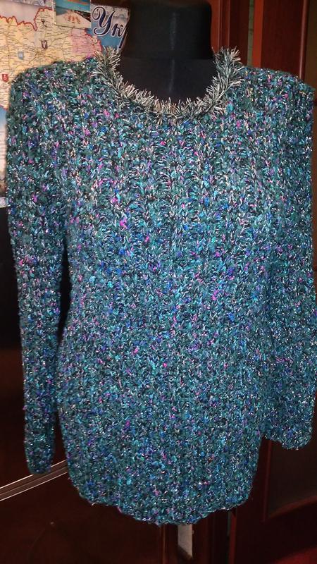 Свитер нарядный 44-46 меланж в хорошем состоянии,очень тёплый,ПОГ 48-60,рукав 60,плечи 41,длина 65,отлично тянется!Ярче,чем на фото!Манекен 46р.