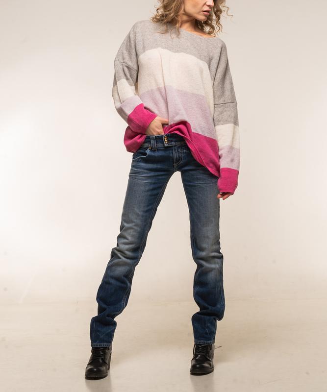 Трендовый свитер, супер-качество и модель. Made in Italy. Есть 6 моделей. Женский свитер в полоску из тонкой шерсти оверсайз. Тёплый и лёгкий. Приятный трикотаж. Брендовая Италия. Замеры :Ширина свитера 62 см. низ. Длина 57 см., по спинке 65 см., Рукав 38 см. Состав: 70% шерсть, 25 % полиамид, 5% другие составляющие. Производство Италия.