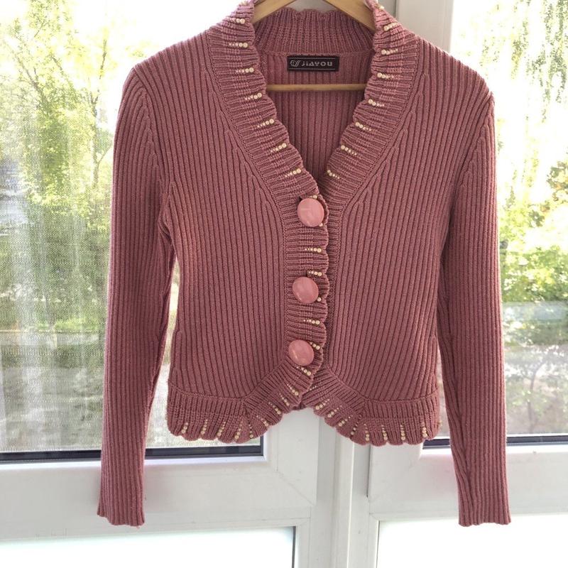 Кофта в ідеальному стані. Дуже гарна, щільний у язка. Розстібається. Рукав від плеча 61. Довжина по спині 51, спереду 55 Розмір S-M.