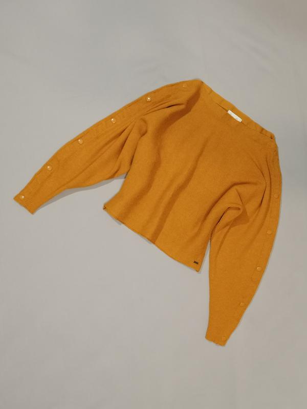 Продам кофточку в отличном состоянии. Без дефектов и нюансов. Состав :47%вискоза ;28%нейлон ;25%полиестер. Размер на бирке указан medium Симпатичная кофточка Горчичного цвета. Вдоль рукава украшена имитацией кнопок. Фасон-рукава"летучая мышь".Вырез-"лодочкой". Хорошо сочетается с любой одеждой и обувью. Отменного качества. Отлично сидит на фигуре. Замеры :(первая цифра в спокойном состоянии, а вторая до скольки будет тянуться) ПОГ-свободно(не более 66см) ПОТ-49/65см Полуокружность по низу кофточки-44/61см Длина рукава от горловины -64см ДЛИНА КОФТЫ ОТ ПЛЕЧА -49см ❗❗❗Продажа только по городу Мариуполь ❗❗❗ Торга НЕТ, цена окончательная ❗ -В замерах допускается погрешность +/-1см -В реальности оттенок материала может отличаться от того, что на экране -Ассортимент моего магазина это:сток, крем, секонд хенда. Могут иметь характерный запах. ФОТО НА ТЕЛЕ НЕТ Возврата НЕТ