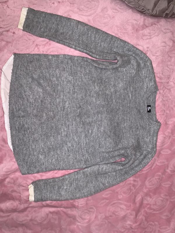 свитер типо комбо с рубашкой (кусочки подшиты), очень теплый,