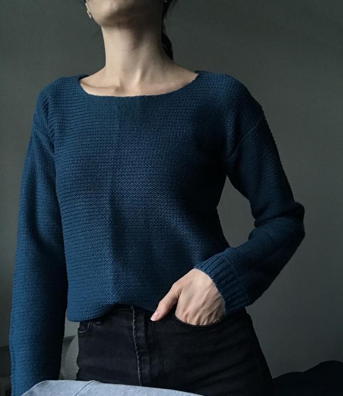 Теплий в'язаний світер з акрилу. Колір - темно-бірюзовий. Стан хороший. Розмір М