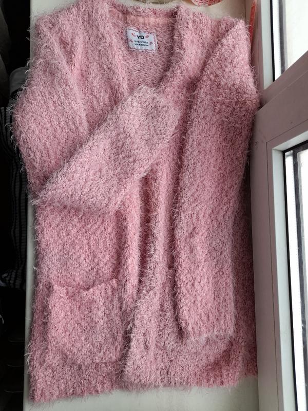 Состояние идеальное , пушистая ,нежно розового цвета. пишет на 12-13 лет ,реально идёт на XS , S. кофта идёт без застежек , с двумя карманами. длина 64 см рукав 66 см рукав от плеча 59 см плечи 38 см по груди 43