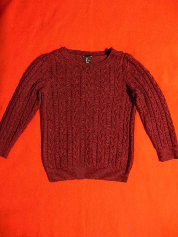 Теплая кофта свитер бордового цвета от H&M. Цвет глубже чем на фото. В очень хорошем состоянии, без дефектов. Размер S.