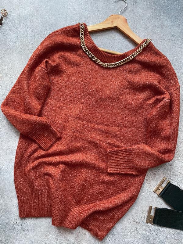 Тёплый свитер красивого терракотового цвета с интересной спинкой Primark Состояние: новый Размер XS / EUR 34-36 / UK 6-8 Длина от плеча 74 см Ширина 49 см Ширина резинки снизу 43 см