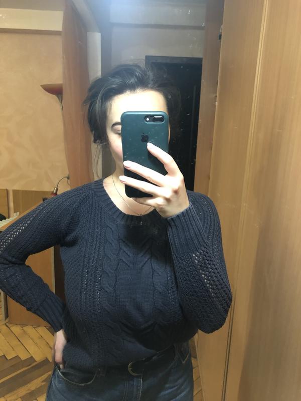 Вязаный темно синий свитер Размер s, подходит на m/l