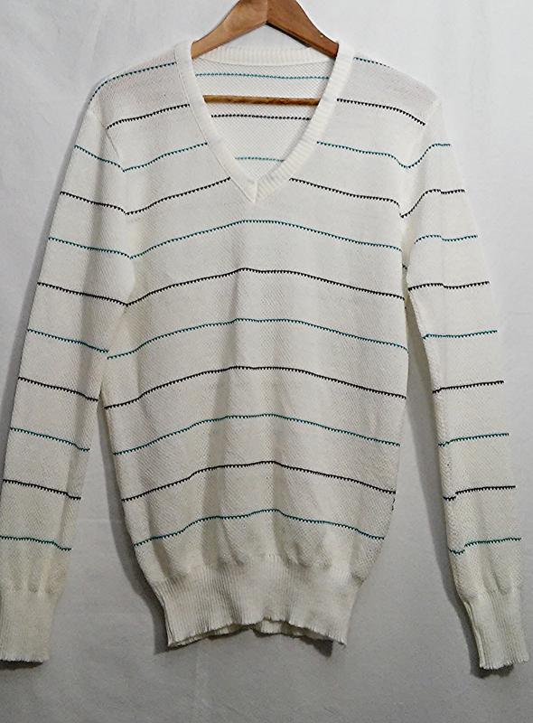 Нежный белый свитер в черно-бирюзовую полоску. Ставший уже винтажом, он нежный как облачко, очень классный. Размер: S/M (уточняйте).