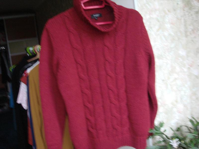 Теплый, толстый свитер, цвета марсала, ближе всего цвет на втором фото. Элегантный воротник, можно носить как отложной или отвернуть по современному))) Длина - 67 см, ПОГ - 55-56 см, ПОТ - 55-56 см, рукав 62 см, плечи немного спущены, ширина плеч 46 см. ❄ Смотрите остальные мои объявления. ❄ Отвечу на все вопросы. ❄Есть дополнительные фото.