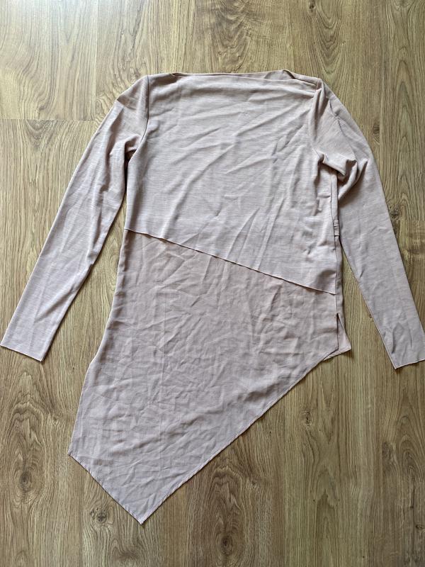 Легка ковта , геометричне, нестандартне пошиття, зверху тканина щільніша, але легка, знизу вільний шифон. Є незначний шлюб, на фото помітно. Річ нова, не була ношений, але без бірки. Заміри скину, якщо потрібно.