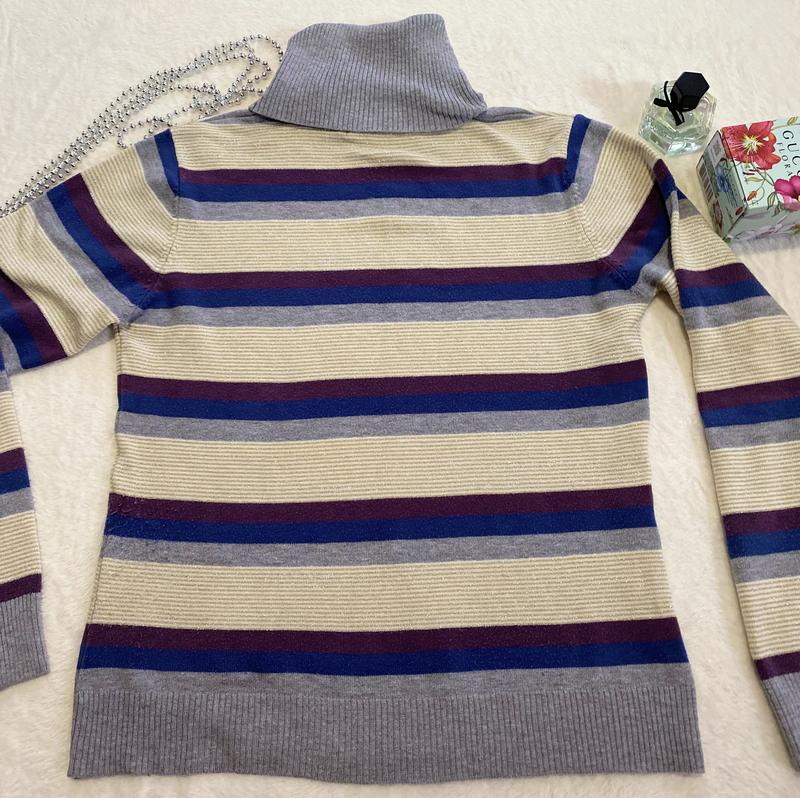 Красивый удобный свитер ПОГ 50 бежевая полоска с люрексом