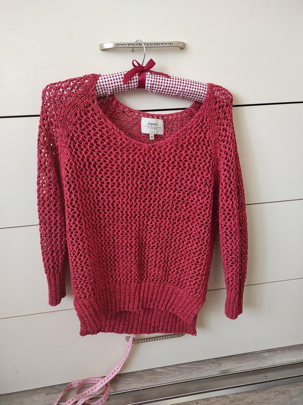 Розмір М Стан ідеальний , на рукаві є невелика розтяжка ниток . В носці зовсім не помітно