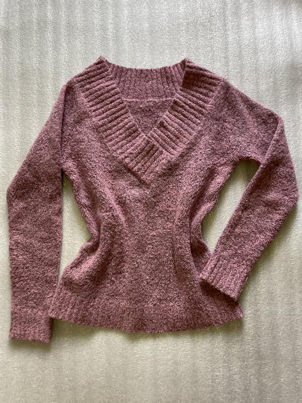 Вязаный свитер нежного розового оттенка с треугольным вырезом, теплый и приятный к телу ) для дополнительной информации пишите 🦋