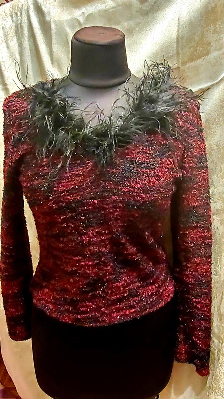 Свитер с лебяжьим натуральным пухом, очень качественная ткань имеет вплетение латекса, выглядит народно,но можно и на каждый день.