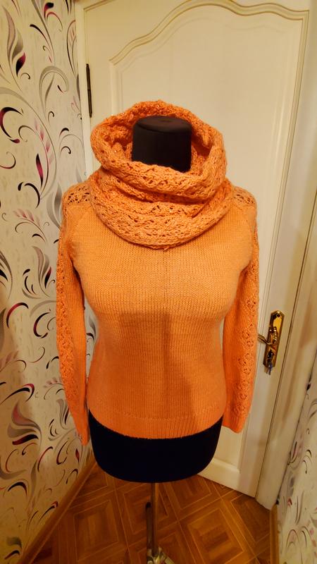 Цвет персиковый,состояние очень хорошее ,хомут можно одеть как шарф или шапку.