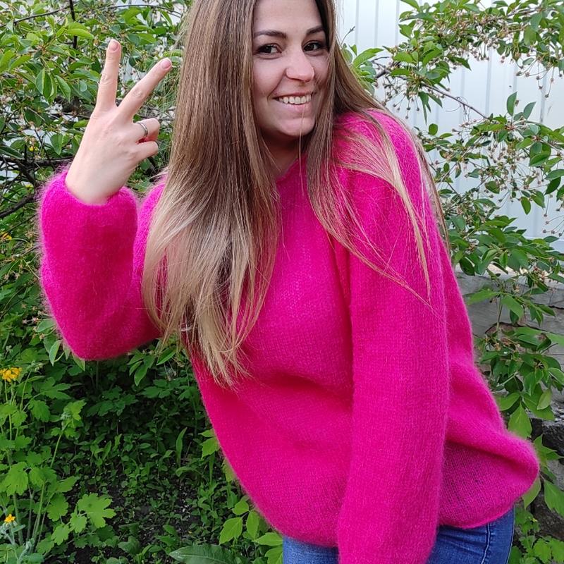 Свитерок из итальянской кидмохера периум класса.Очень нежный,тепленький яркий свитерок сделает вас неотразимой.Ручная вязка, размер оверсайз, подходит для размера от S и до XL. с разной степенью облегания.Сделай себе подарок купи хорошую вещь.