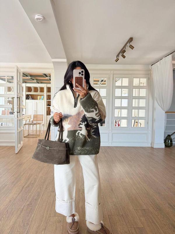 Флисовый бомбер 🤍 Зимний принт с оленями выглядит ну дууже стильно и празднично идеальный вариант к Новому году ✨ Одеты - и мгновенно появляется ощущение тепла, уюта и настоящего праздничного настроения 🎄 Производитель: Турция Состав: 70% хлопок, 30% полиэстр Размер: универсальный (42-48) Цена 1880 грн Замеры: Длина: 68см Объем груди: 114см Рукав от шва 55см, от шей 74см No2236