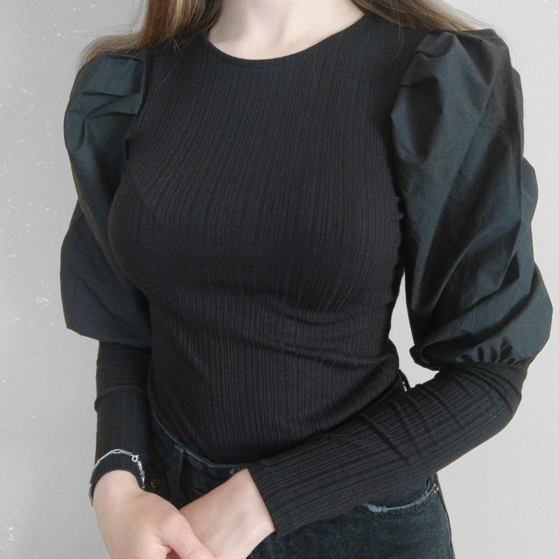 Чорна кофта з об'ємними рукавами ◽️розмір: S ◽️стан: Новий 🏷 ціна: 220грн Параметри: Довжина: 55см Пів обхват грудей: 35 см Рукав: 65см