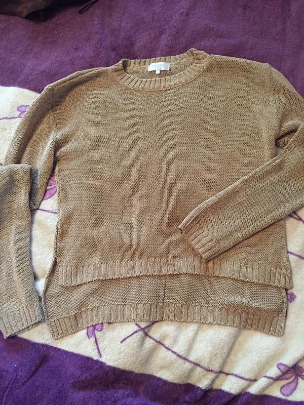 Свитерок сзади удлинённый ,рукава тоже удлиненные ,по бокам разрезы ,очень хорошо смотрится с лосинами ,джинсами,можно носить как оверсайз