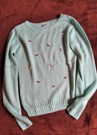 Свитер в бледно-бирюзовом цвете с пайетками По бирочке на 11-12 лет (подойдёт на размер S) Акрил и вискоза Материал мягкий и теплый В идеальном состоянии По всем дополнительным вопросам обращайтесь в любое время