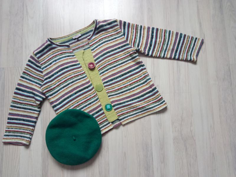 Фишка кофты: разные по дизайну пуговицы, очень теплая Замеры: длина изделия 48см, рукав 3/4 42см, ширина в зоне подмышек 46см. Размер указан 14 (GB), но на мой 10(38) отлично сидел, не знаю в чем фишка. Она не должна быть в обтяжку, хорошо носить сверху водолазки с джинсами, брюками, юбкой-карандаш. Сделано в Турции. Состояние очень хорошее, носилась немного, нюансов нет, цвета все яркие. С беретом в комплекте цена - 100грн, берет отдельно стоит 30 грн Заходите в мой магазин, есть много хороших и не дорогих вещей для лета!