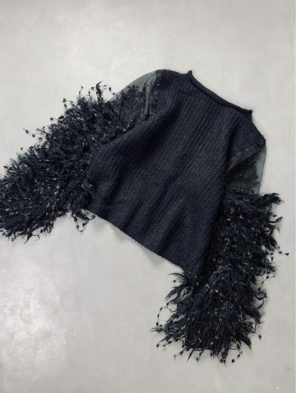 Свитер с перьями на рукавах. Размер М Травка,не кусается. 🛍Длина 50 Пог 46 Рукав 62 Плечи 36