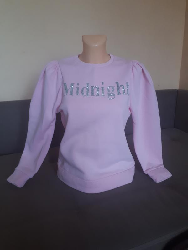 Світшот на байці.Чудовий стан.Стильний,сучасний теплий,з трендовими рукавами- буфами.Колір ніжно рожевий, не кислотний,камера не дуже передала на скільки він зефірний і ніжний...