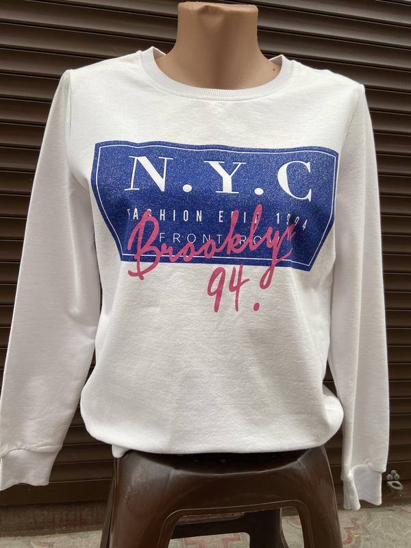 Кофта -світшот. Біленька з надписом на синьому фоні. Розмір36-40