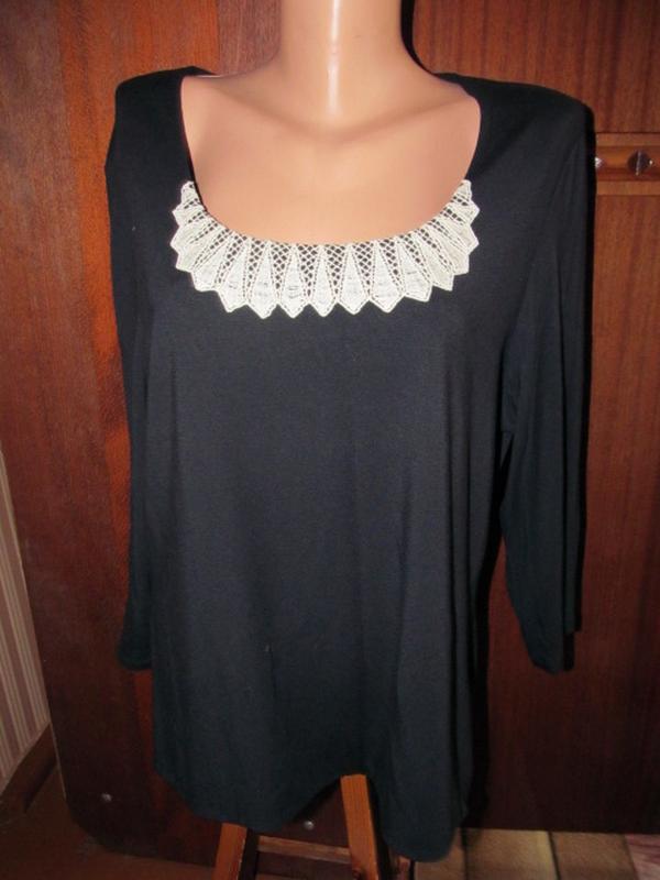Дуже класнюча кофтинка з щільного трикотажу, м"яка, приємна до тіла Перід йде в два полотна. Колір темно-синій, ближче ло чорного Р 16\ 18 ПОГ-53\60 ПОБ-55\65 Довжина-62 Рукав 3\4