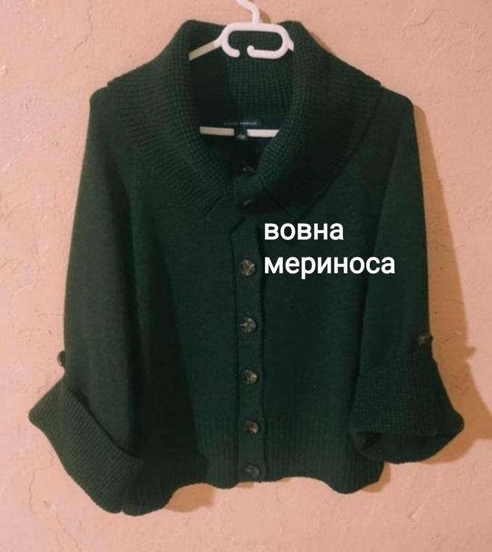 Вовна мериноса кофта светр кардиган темно-зелений довгий рукав