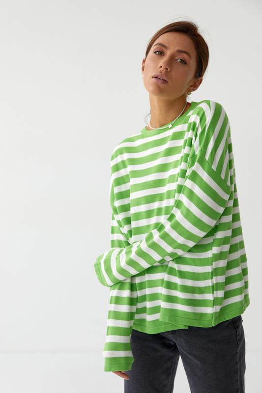 Эта полосатая женская кофта идеально подойдет для осенне-весеннего периода. Его мягкая ткань согреет, подарит комфорт и станет альтернативой легким джемперам или тонким свитшотам. В модели проймы опущены, рукава длинные, низ ровный. Круглая горловина дополнена воротником из двойной машинной вязки.
